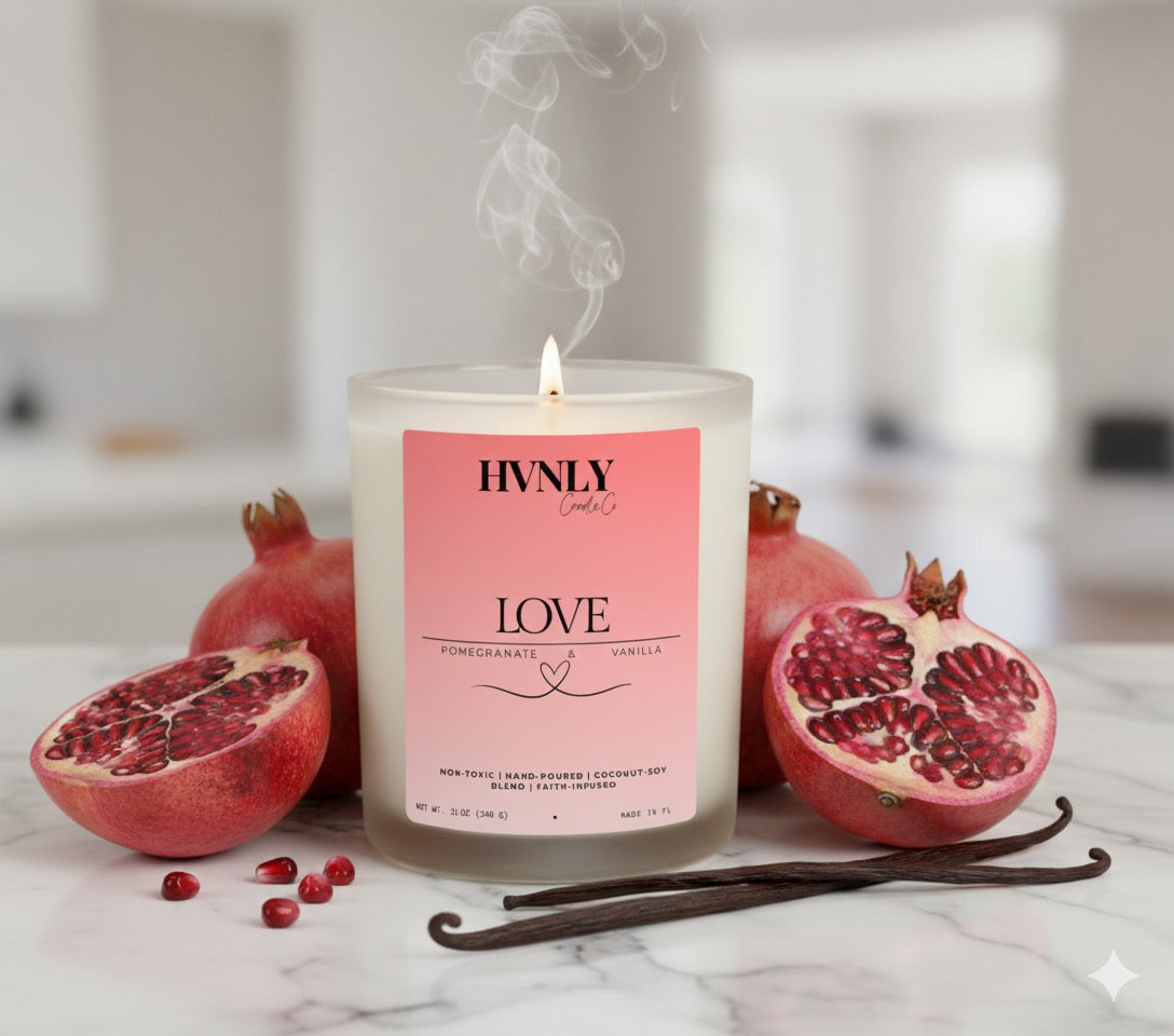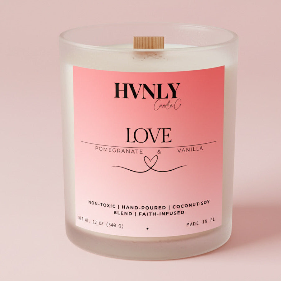 Love is the heartbeat of Heaven — pure, steady, and everlasting. Our LOVE Candle is a sweet blend of pomegranate and vanilla, symbolizing the warmth and depth of Jesus’ love for us. With each flicker, it fills your space with comfort, grace, and the gentle reminder that love is both a gift to receive and to give.